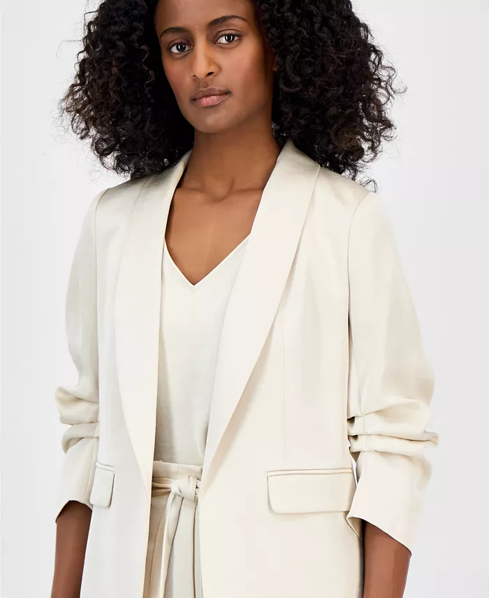 Women’s Open-Front Scrunch-Sleeve Blazer