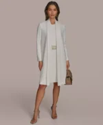 - Chain trim at front; jacket and dress set